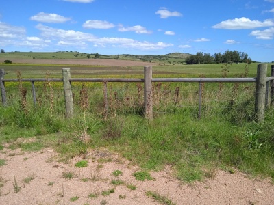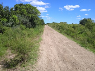 Chacra de casi 10 hectáreas, sobre camino, la luz pasa por el frente, buena tierra, alambrado perimetral, por el medio pasa un curso de agua que se puede hacer un buen espejo de agua